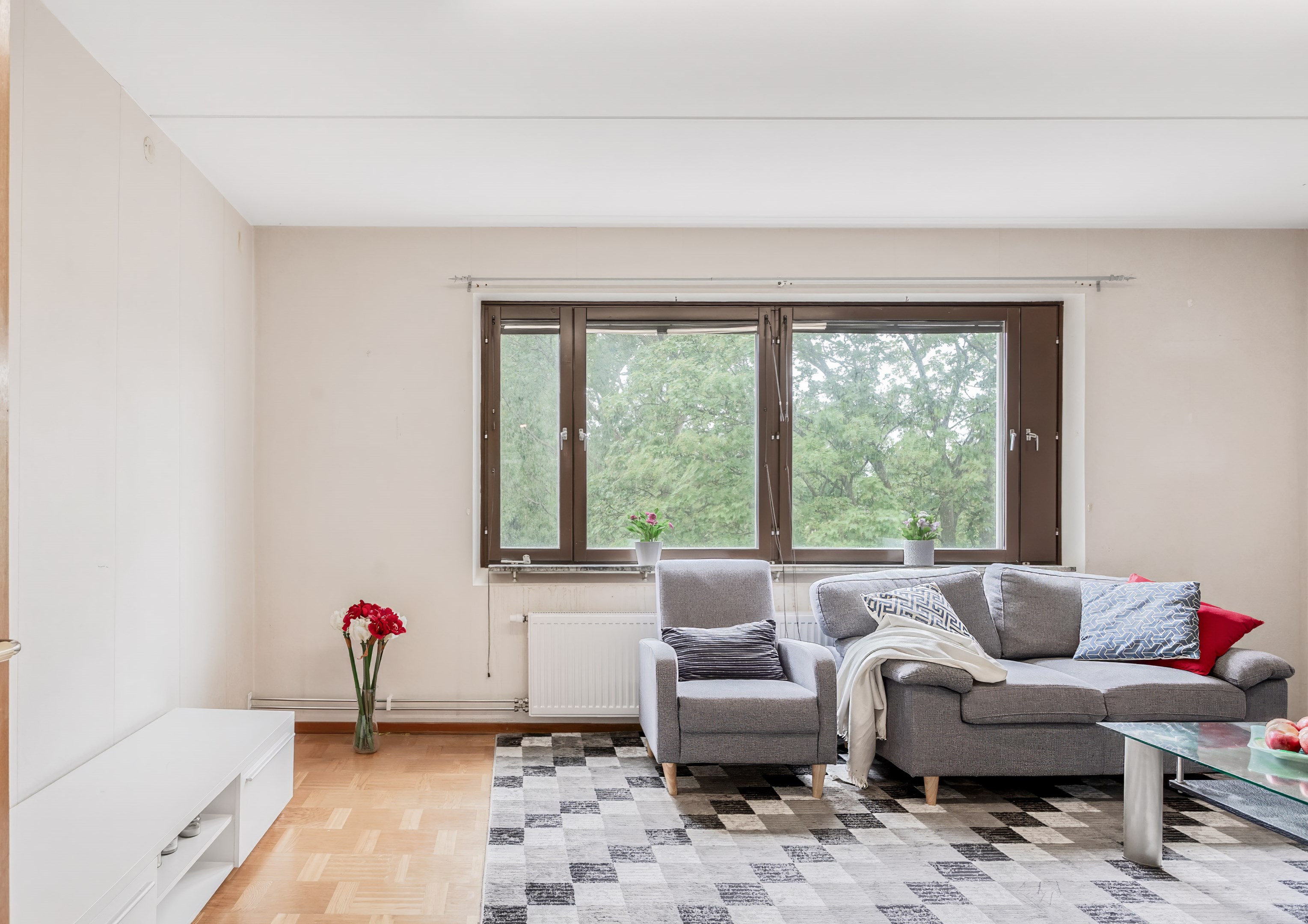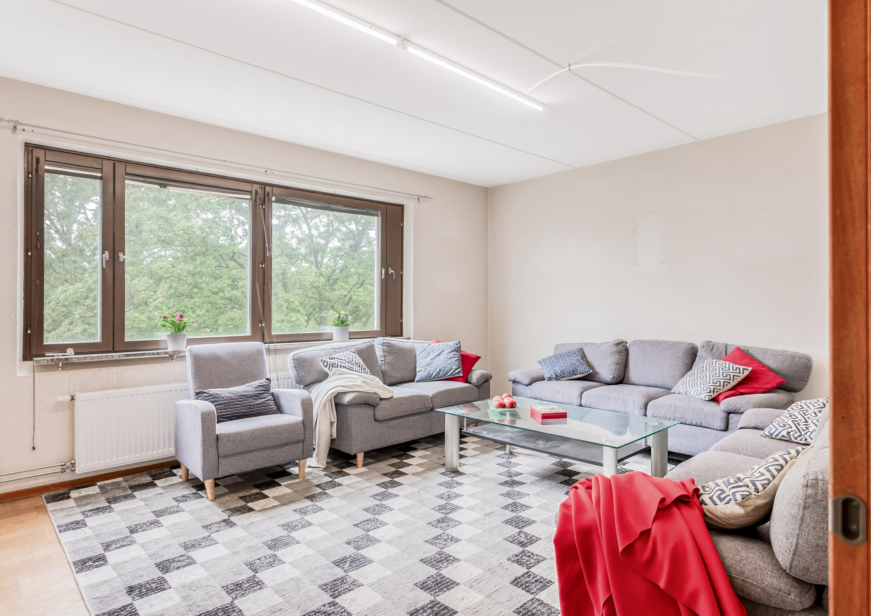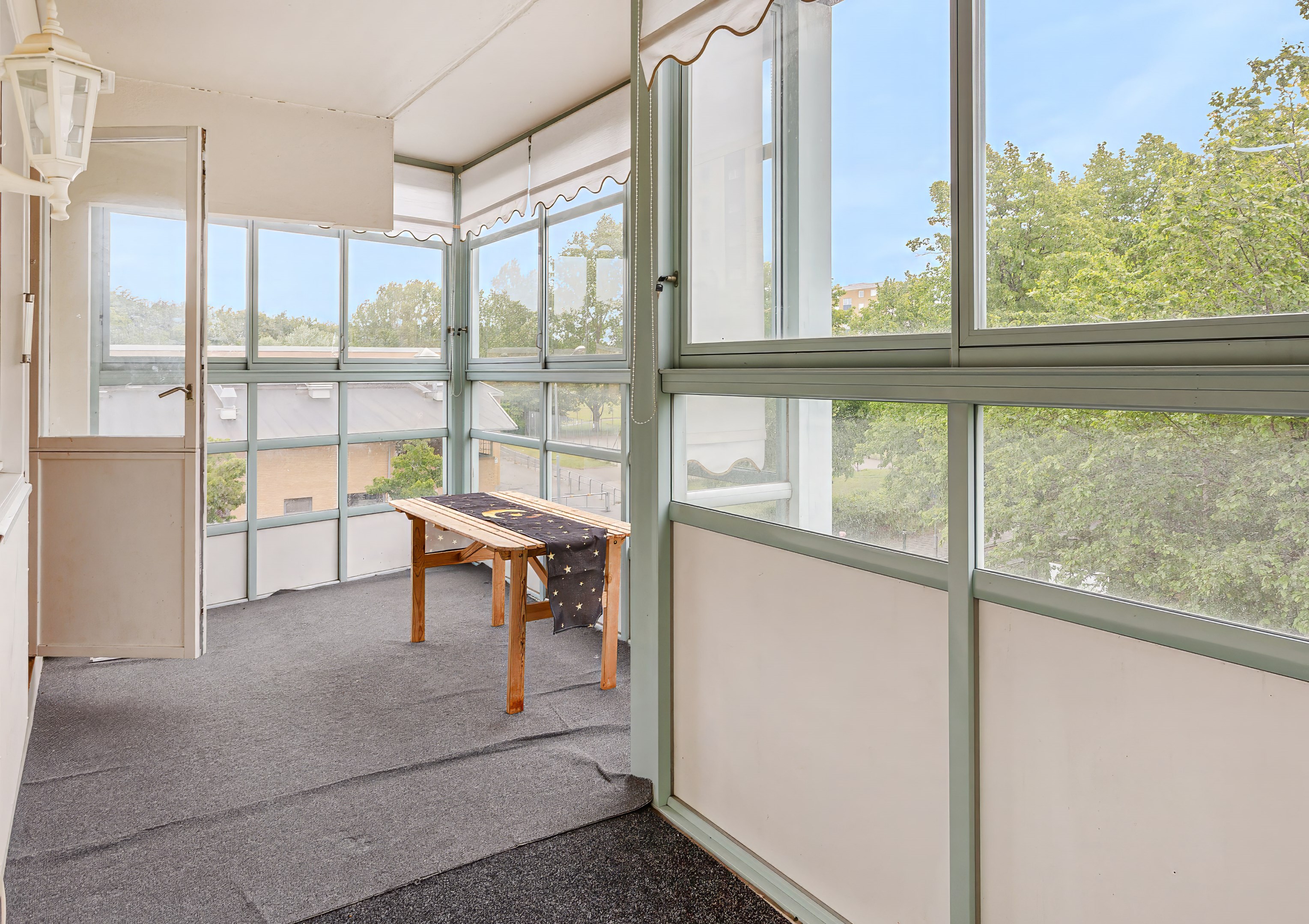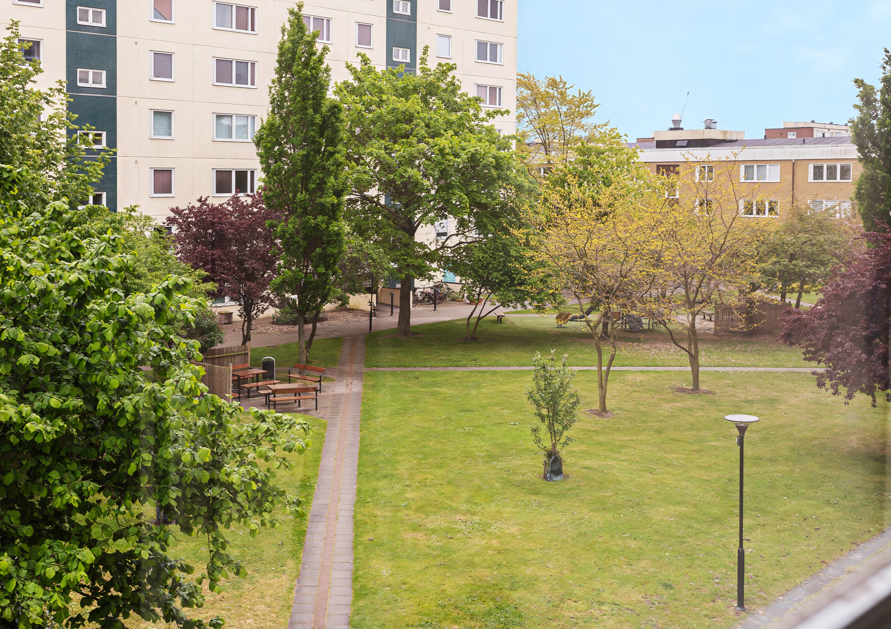 Välkomna till ett grönt bostadsområde! Här finner vi en genomgående ljus bostad med rymligt kök och härliga sällskapsytor! ---ENTRÉ--- Välplanerad hall med inbyggda garderober i vinkel. Genomtänkt planlösning. Ljusa väggar. ---SÄLLSKAPSRUMMET--- ...med härlig utsikt över grönskande område! Rummet är rektangulärt och lätt att möblera! Fint parkettgolv och ljusa väggar. ---SOVRUM 1--- ...med plats för dubbelsäng och extra förvaring. Parkett och väggarna i trevlig kombination av klassiskt vit och beigt. ---SOVRUM 2--- Även här är det gott om plats för både dubbelsäng och garderober. Stora fönsterpartier släpper in mycket ljus! Parkett på golvet och väggar i ljusaprikos nyans. ---KÖKET--- Välplanerat kök med alla detaljer omsorgsfullt genomtänkta. Kyl/frys, spis, spisfläkt. Gott om förvaringsutrymme. Utgång till stor inglasad balkong i söder. ---BADRUM--- Våtrumstapet. Dusch. Handfat, wc och handdukstork. ---GÄSTTOALETT--- Finns i anslutning till hallen. Handfat, wc. Varmt välkomna på visning!