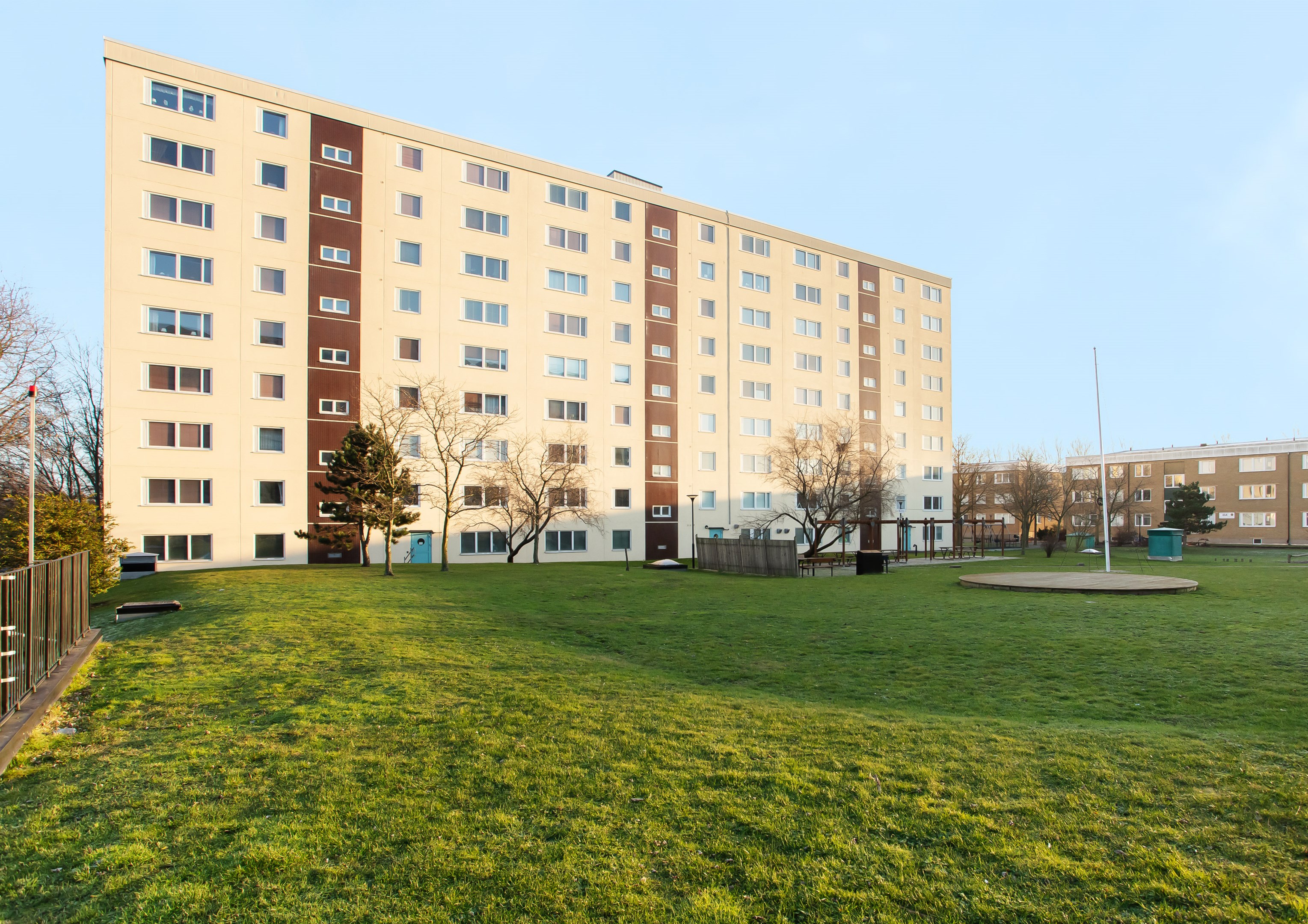 Fastigheterna byggdes 1968 och består av 783 bostäder på Sjöblads väg 1- 43 och Von lingens väg 1- 43. Det finns 305 garageplatser och 388 p-platser med separat kö. Det finns två lagstadgade avgifter som föreningen tar ut i samband med överlåtelse. Överlåtelseavgift 1480 kr (2026) och pantsättningsavgift 592 kr (2026). Köparen debiteras dessa. Medlemskap i HSB krävs.