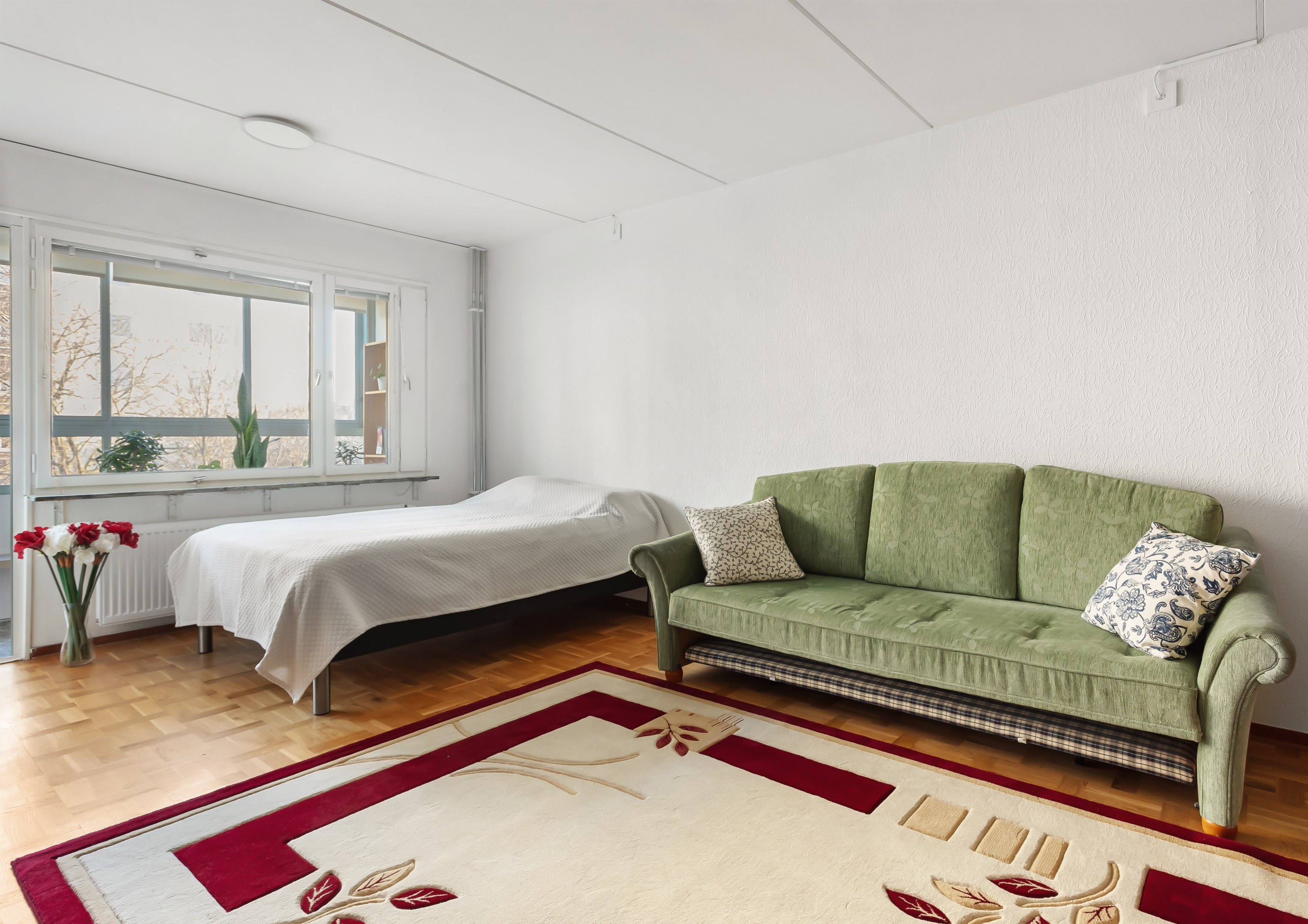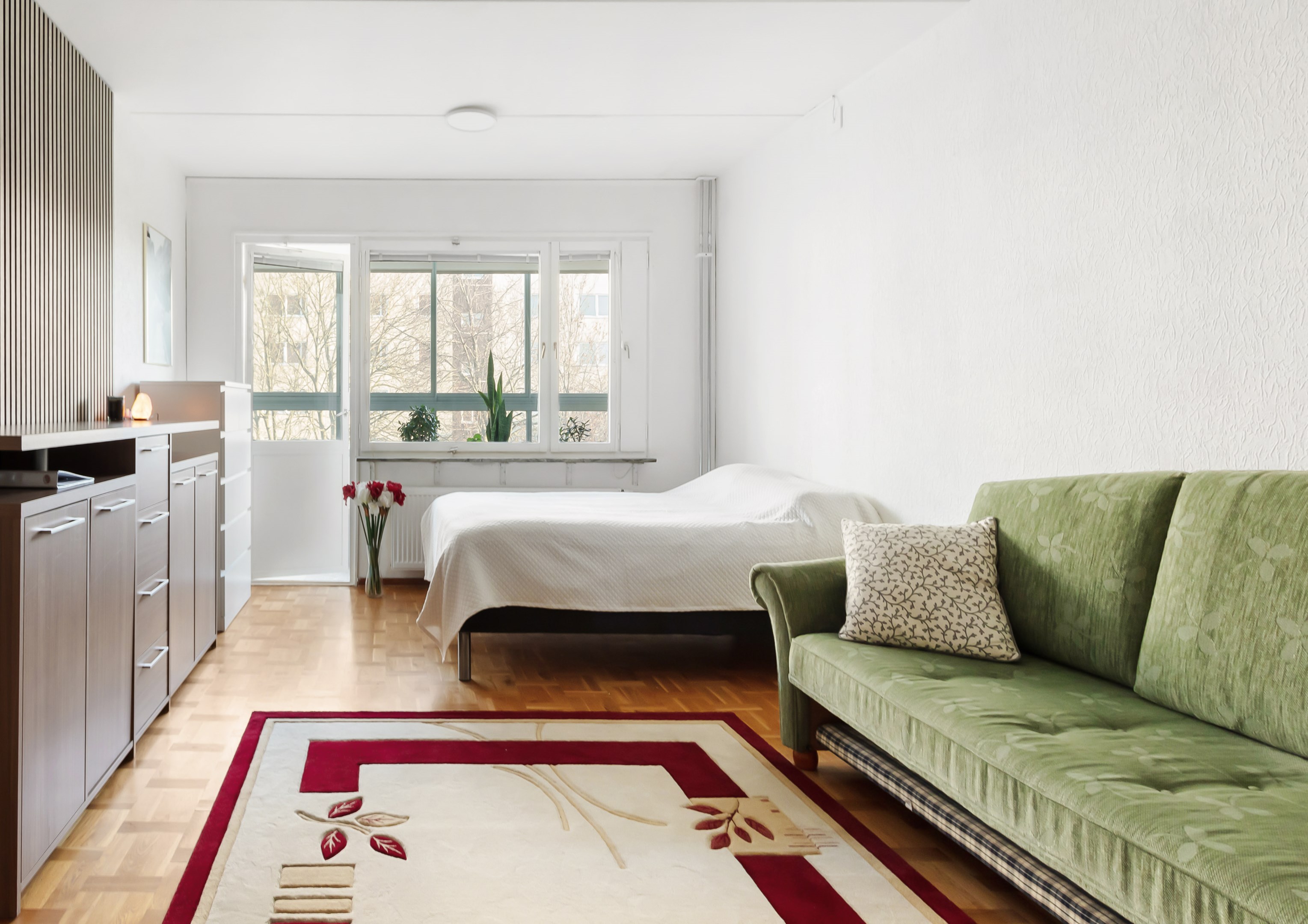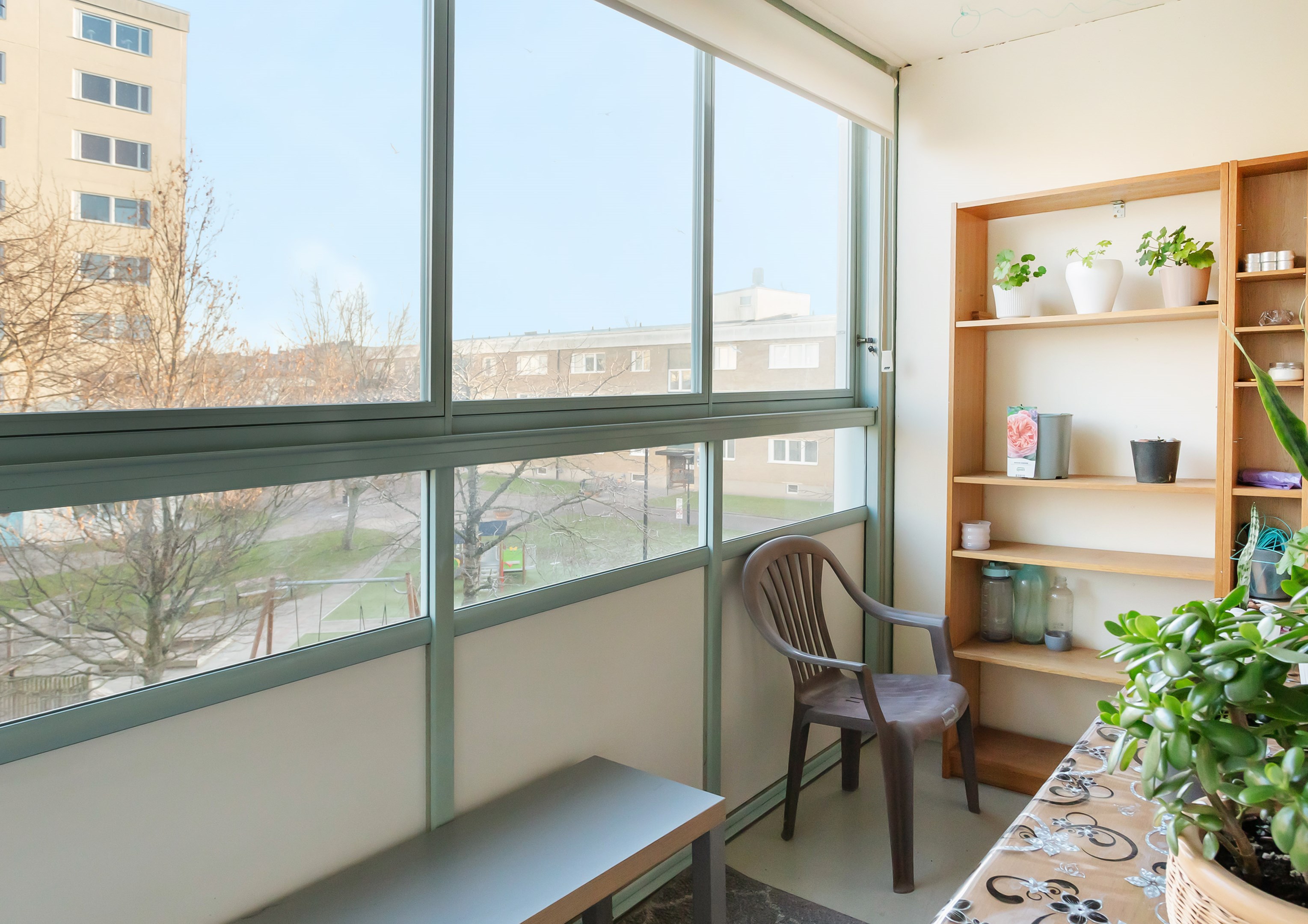Attraktiv bostad med trevlig utsikt mot grönområde! Utgång till inglasad balkong från samtliga rum! Rymligt och ljust! Bekväm fastighet med hiss från markplan! Välkomna!